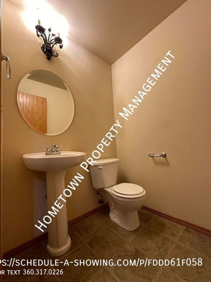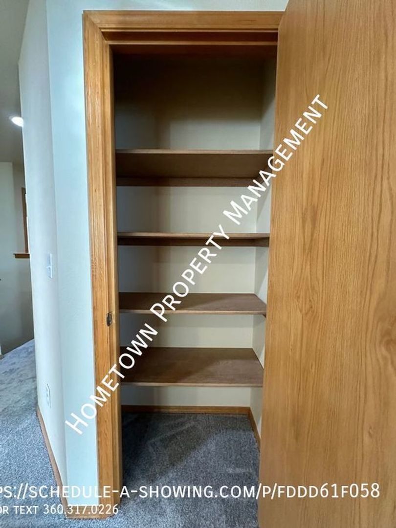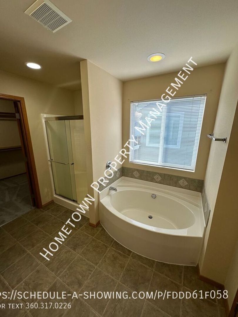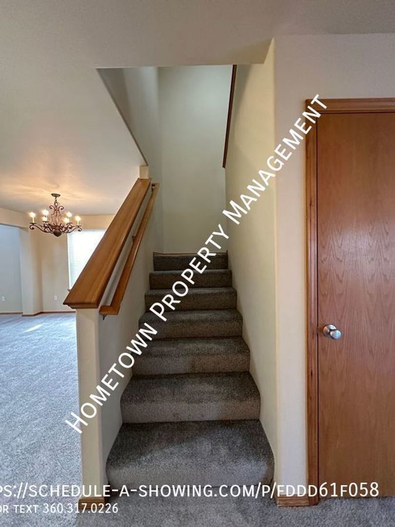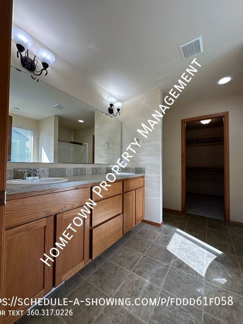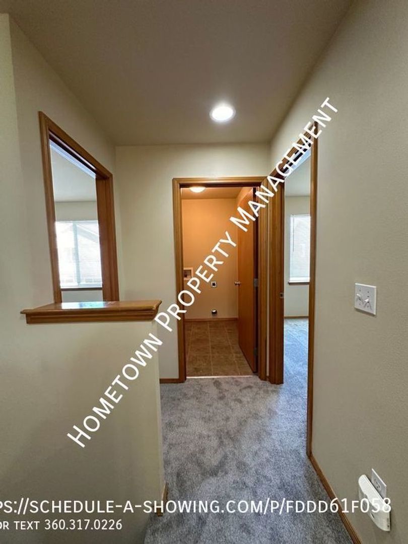 Welcome to this spacious 4 bedroom, 2.5 bathroom house in Lacey, WA. This home is 2400 square feet and features high ceilings and lots of light. The kitchen has a refrigerator, stove/oven, dishwasher and built in microwave as well as a bar. The home also features a cozy gas fireplace in the living area downstairs and a laundry room upstairs with washer/dryer hookups for your convenience. Upstairs you will find 4 bedrooms, including a large primary bedroom with a bathroom that includes 2 sinks, a shower as well as an oval bathtub and a large walk in closet.