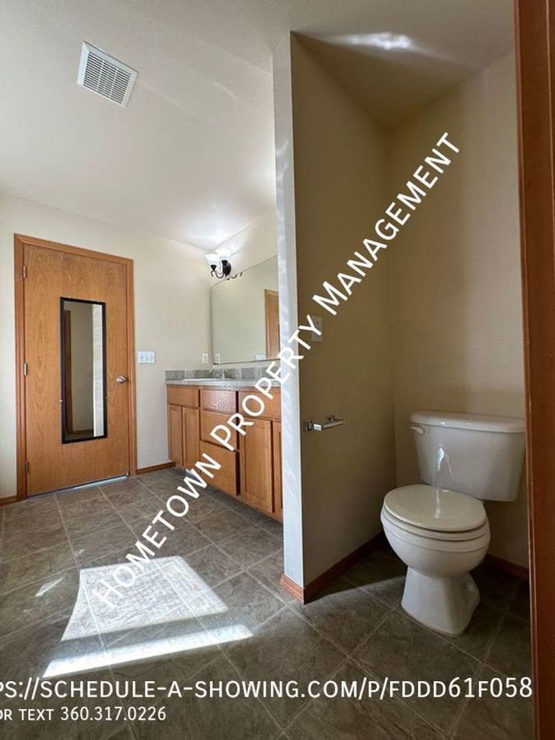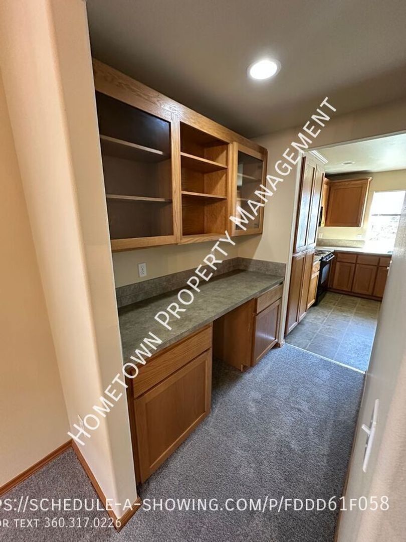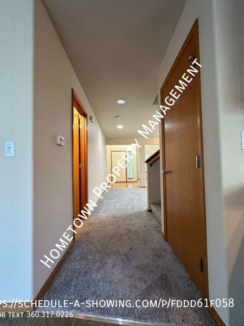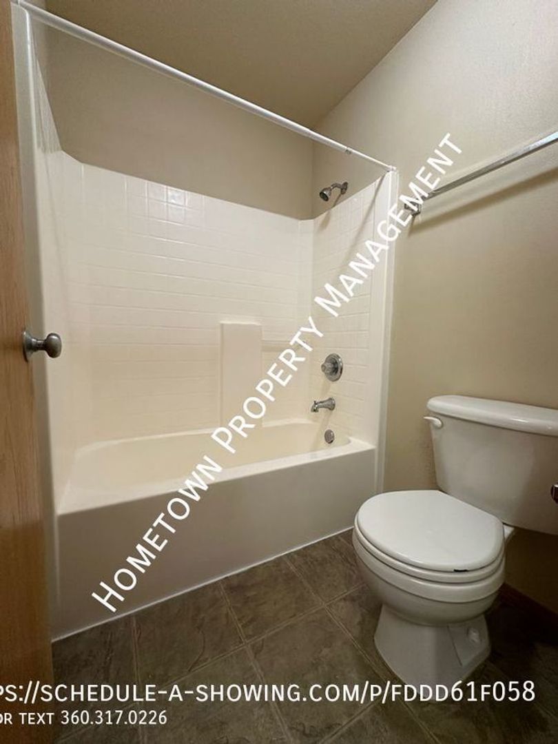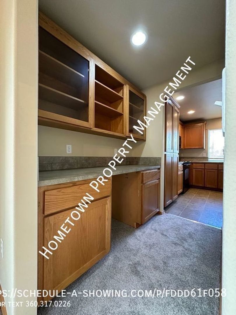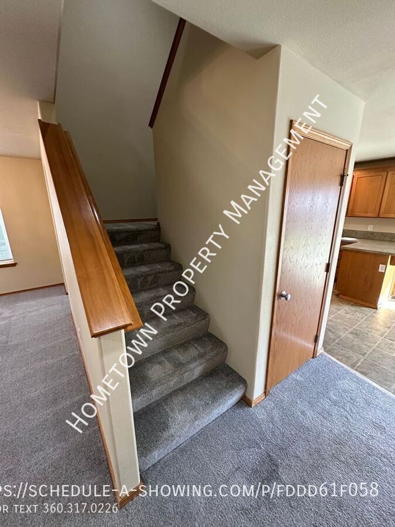 Welcome to this spacious 4 bedroom, 2.5 bathroom house in Lacey, WA. This home is 2400 square feet and features high ceilings and lots of light. The kitchen has a refrigerator, stove/oven, dishwasher and built in microwave as well as a bar. The home also features a cozy gas fireplace in the living area downstairs and a laundry room upstairs with washer/dryer hookups for your convenience. Upstairs you will find 4 bedrooms, including a large primary bedroom with a bathroom that includes 2 sinks, a shower as well as an oval bathtub and a large walk in closet.